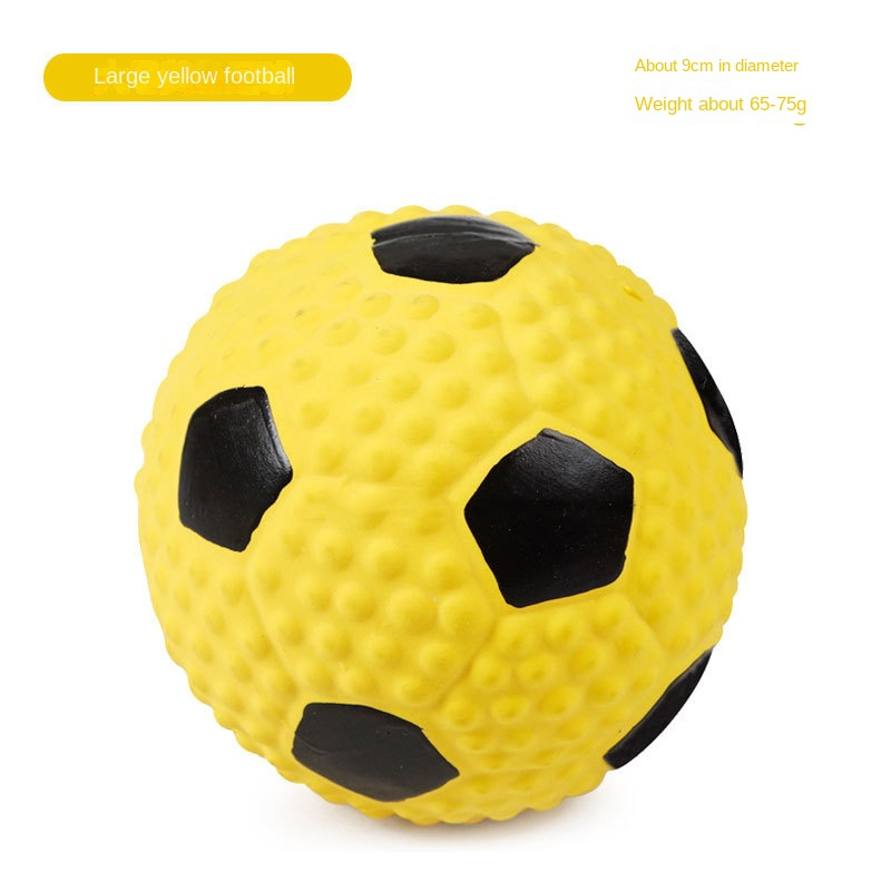 NON-TOXIC & DURABLE: Squeaky dog toys balls comply with the exact same safety standard as children’s toys. These small squeaky balls for dogs are no harmful chemicals such as BPA; lead; or phthalates in our toys. Charming pet latex dog toy are bouncy enough to excite your pet and stretchy enough for him/her to get a good grip with mouth.SOFT NATURAL RUBBER: Natural Soft Dog Toys Ball are made from 100% natural rubber latex. It is very pliable and a soft but durable latex on dog’s teeth; jaws and mouth. Dog squeaky chew toy ball is durable and will simply reinflate after your dog grabs it. It's also easy to clean.PERFECT FOR SMALL MEDIUM DOGS BUT NOT AGGRESSIVE CHEWERS: This soft; bouncy; squeaky rubber ball is 2.95 inches in diameter. It’s flexible enough for my small dog to grab comfortably. The weight of it is nice too; being just heavy enough that you can throw it well.PERFECT FOR PLAYING FETCH: This popular; squeaky dog toy is fun to play fetch with because of the ball shape (Yellow Soccer Ball; Volleyball; American Football; Blue Soccer Ball); it bounces unpredictably and surprises your dogs. They will absolutely LOVE playing with and chasing this soft; squeaky and bouncy ball; which will entertain your pup for hours. The perfect gift for every dog and dog lover in your life.GREAT VALUE & FUN: Dog Fetch Toy Ball Built-in Squeaker Makes Noise to Pique Dogs Curiosity; and Appeals to Their Natural Instincts to Hunt. Your pets will completely addicted to these small squeaky balls.